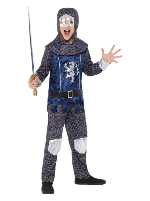 Medieval Knight Costume, Blue, with Top with Hooded Top, Belt & Trousers