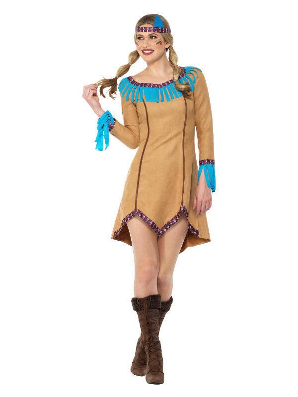 Native American Inspired Lady Costume, Blue & Brown, with Dress & Headband